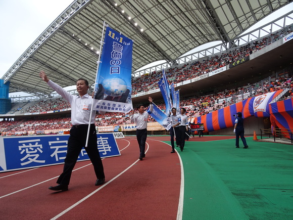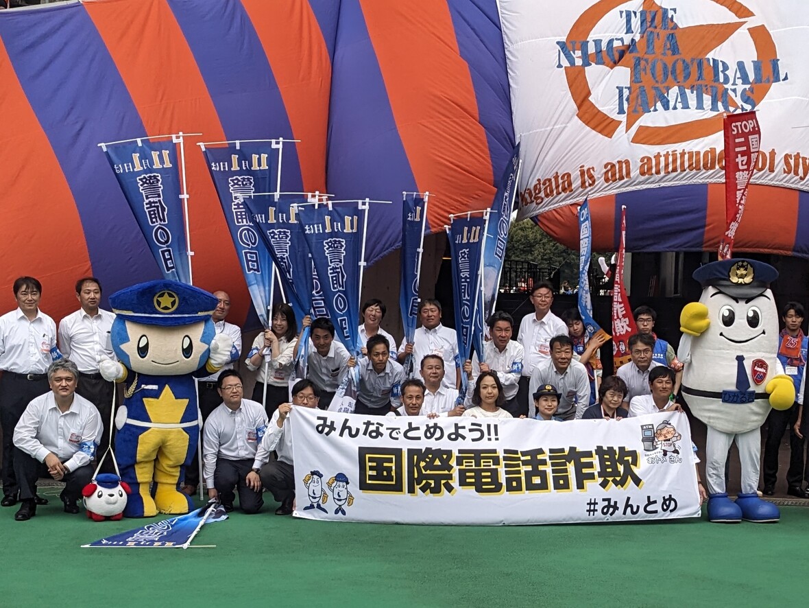当社代表取締役阿部和弘が部会長を務める新潟県警備業協会青年部会が、10月4日、アルビレックス新潟のホームゲームにおいて行われた特殊詐欺撲滅対策広報・支援活動に参加しました。