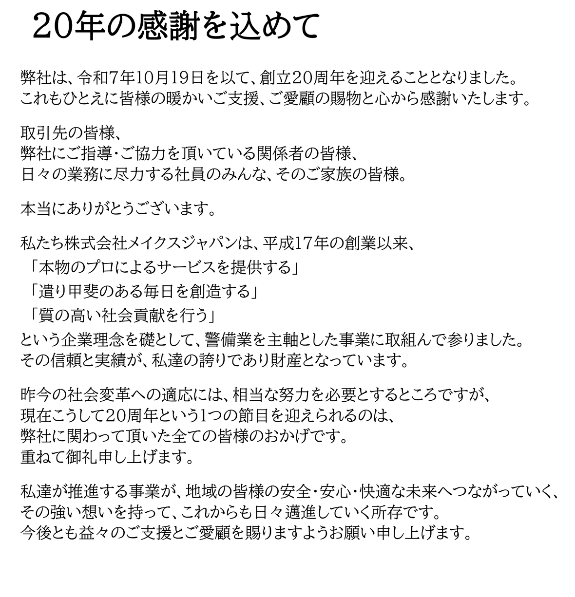 | 2005年 10月 | 株式会社 メイクスジャパン設立 |